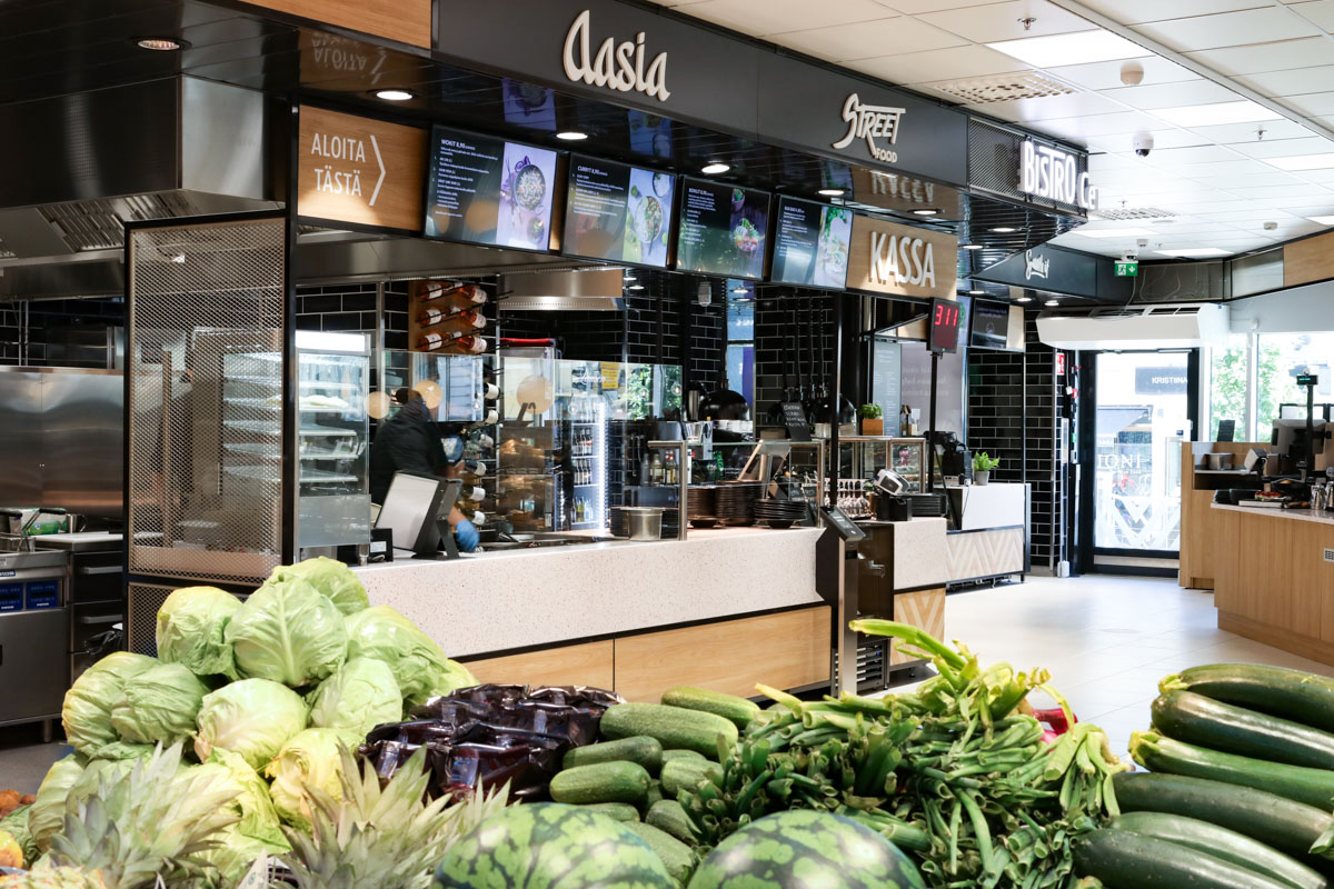 K-Supermarket Centrum in Turku, Finland, is a new grocery store that, in addition to offering a varied range of groceries, offers different types of lunches from sushi to filled sandwiches.