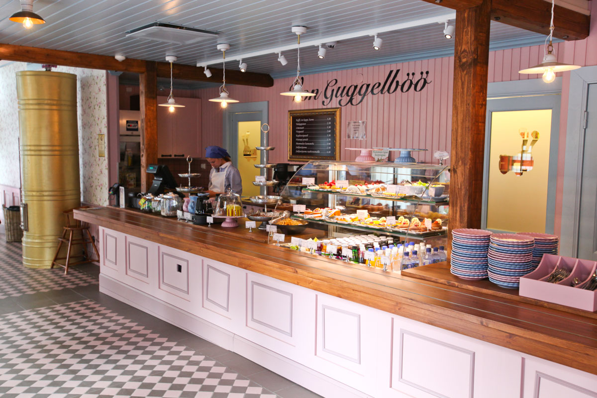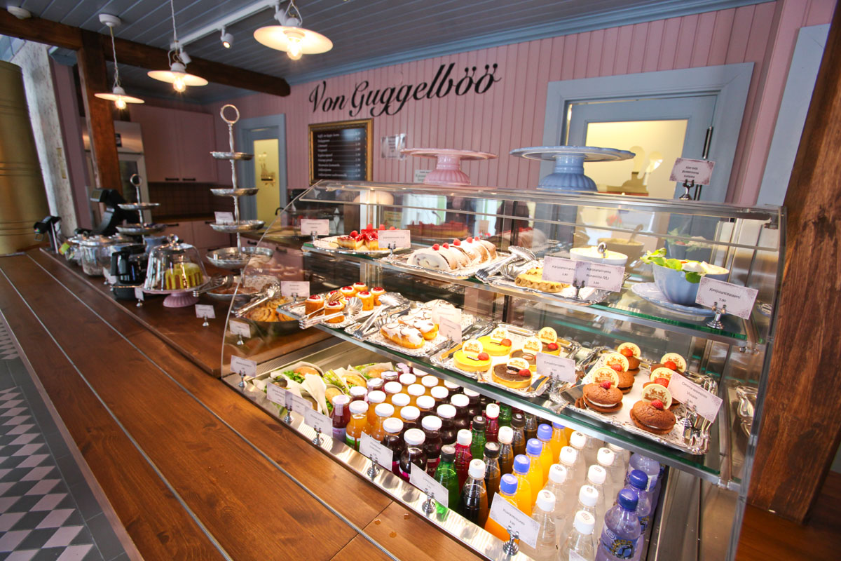 Kahvila von Guggelböö, located inside the Finnish amusement park Särkänniemi, is a cafe that serves beautiful and delicious coffee, beverages and baked goods such as cakes, pastries, macarons, etc.