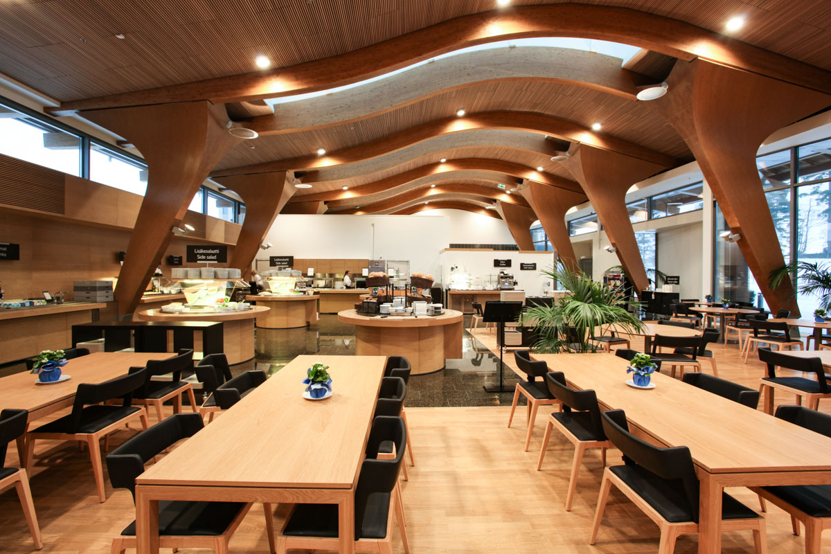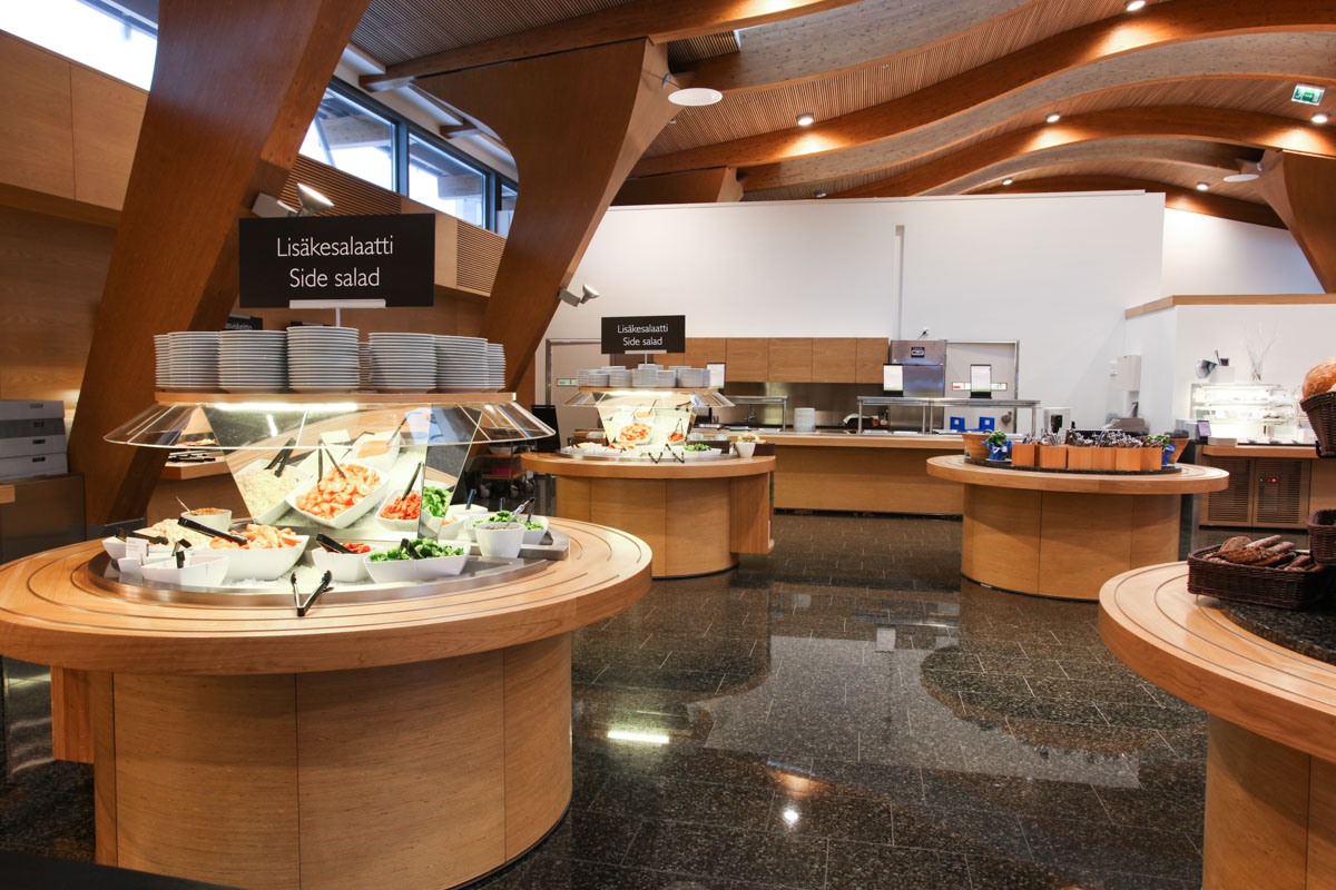 The Metsätapiola office building is located in Espoo, Finland. Metsätapiola offers high quality business premises with modern technical solutions in a special location, nestled by greenery, near the sea. The staff restaurant serves a buffet style lunch for all of the businesses operating in the building.