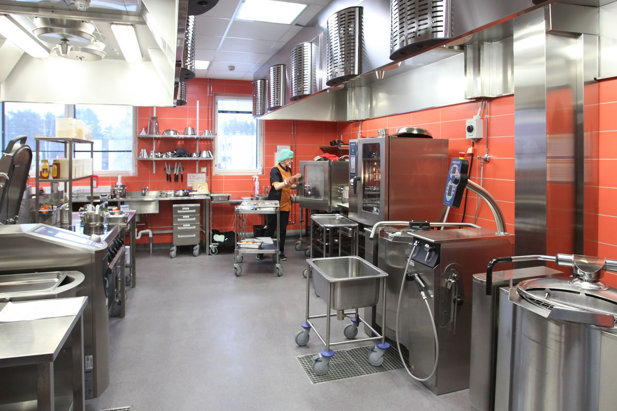 The kitchen at the central hospital in the Finnish region of North Karelia provides patients with around-the-clock food services. In addition, personnel and visitors can dine in the cafeteria.