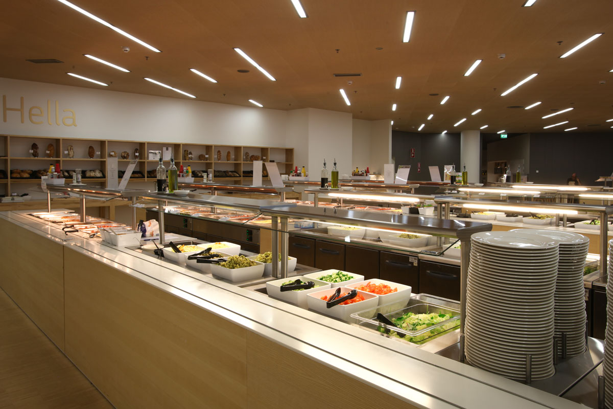 The headquarter of OP Bank is located in Vallila, Finland. The staff restaurant inside the headquarters serves all workers with a healthy and varied buffet style lunch.