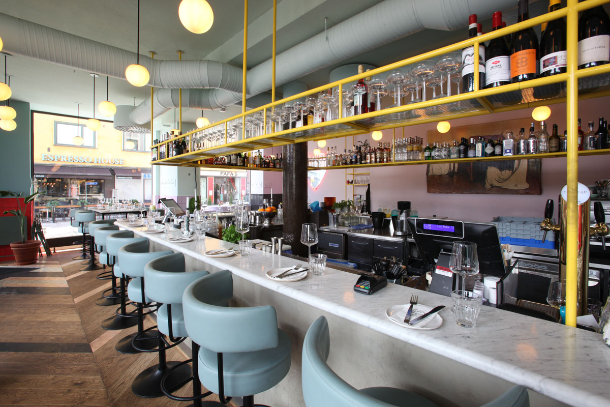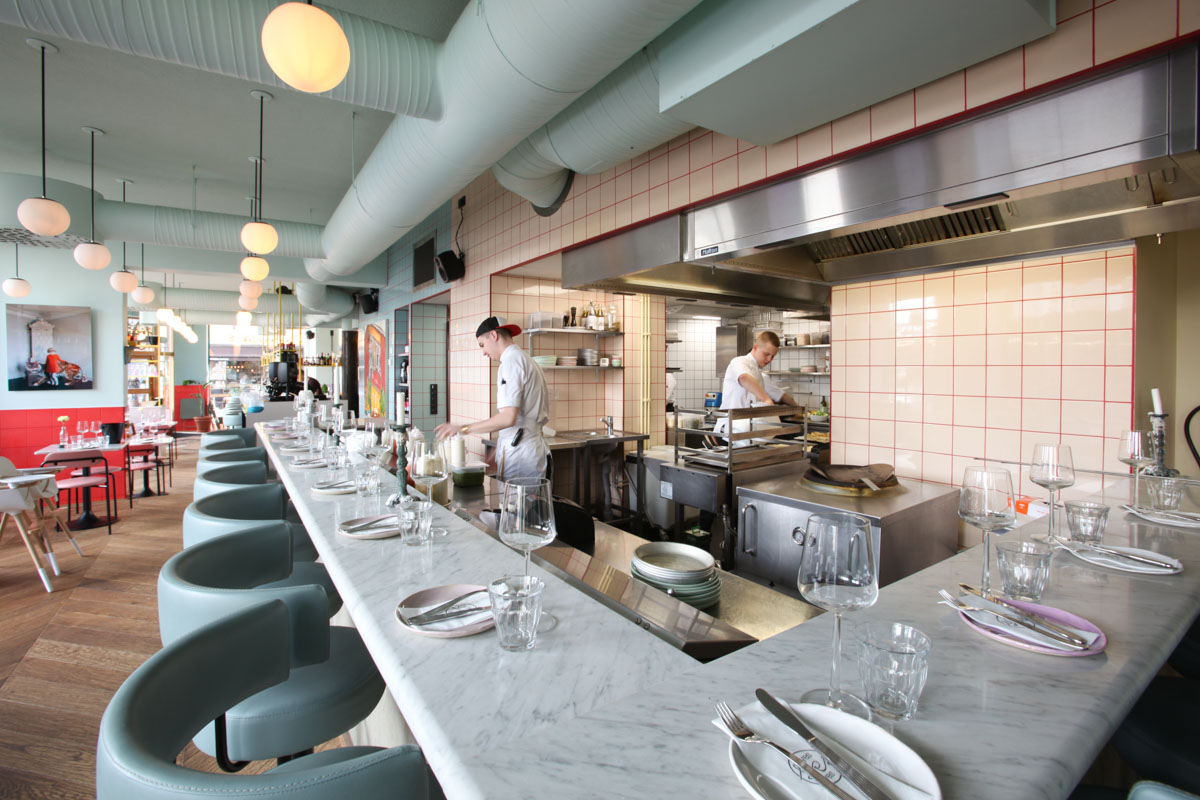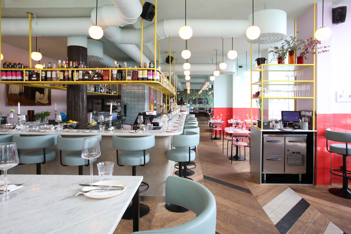 Restaurant Yes Yes Yes, located in Helsinki, Finland, serves a fully vegetarian and seasonal menu. The restaurant has a modern but bright atmosphere filled with pastel colored furniture.