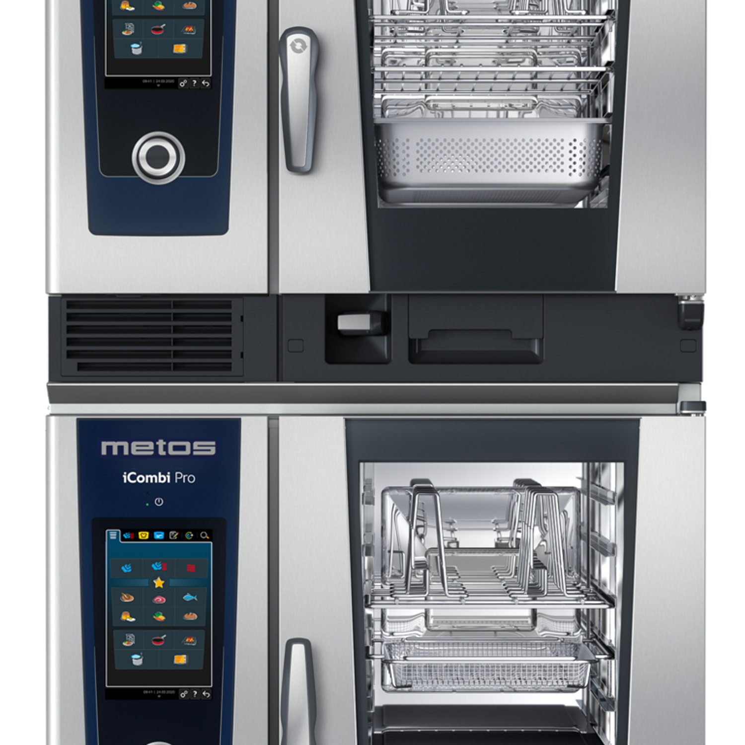Alempi uuni 6-1/1 tai 10-1/1, sähkö- tai kaasutoiminen. Ylempi uuni 6-