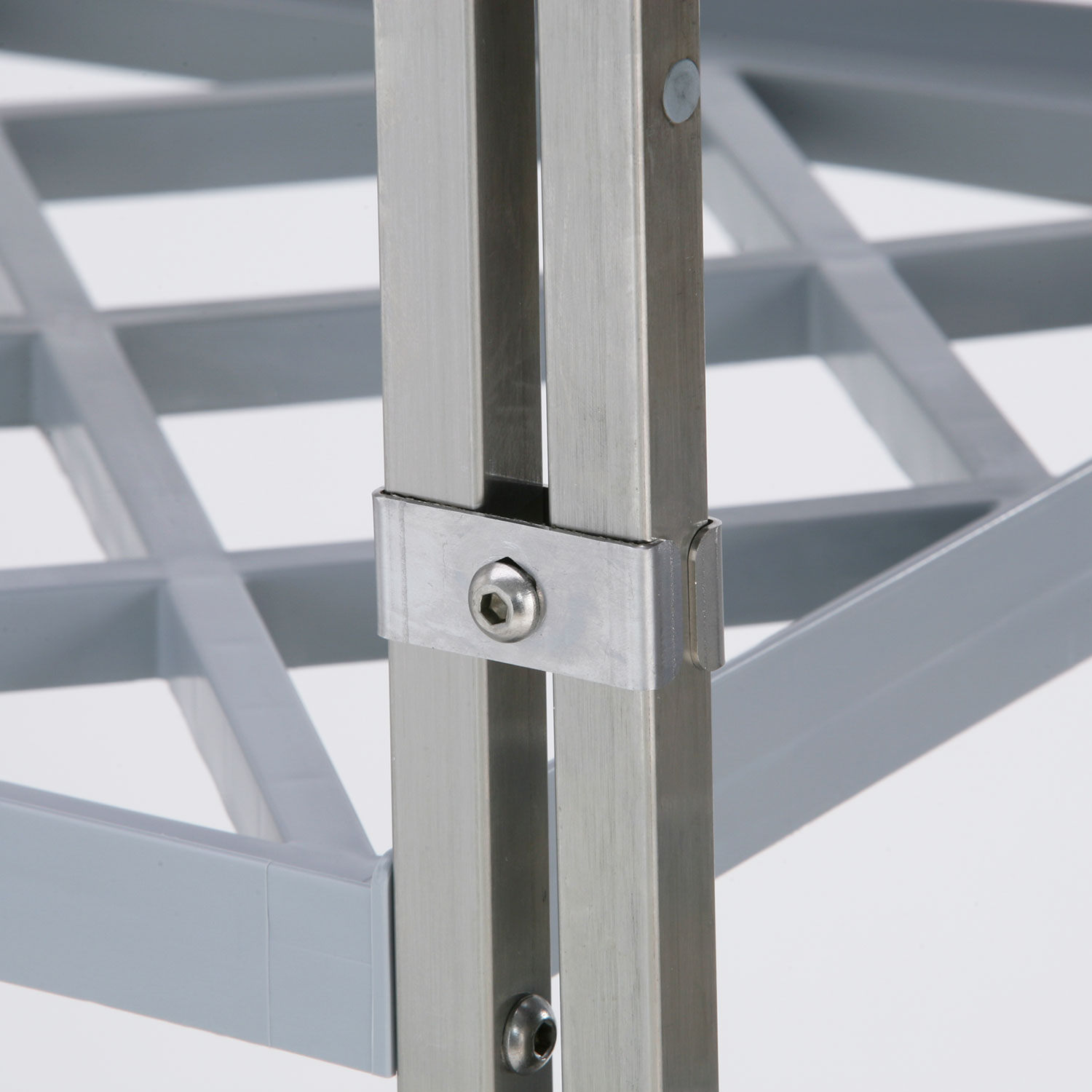 – kiinnike 20×20 neliöputkihyllyjen liittämiseksi toisiinsa