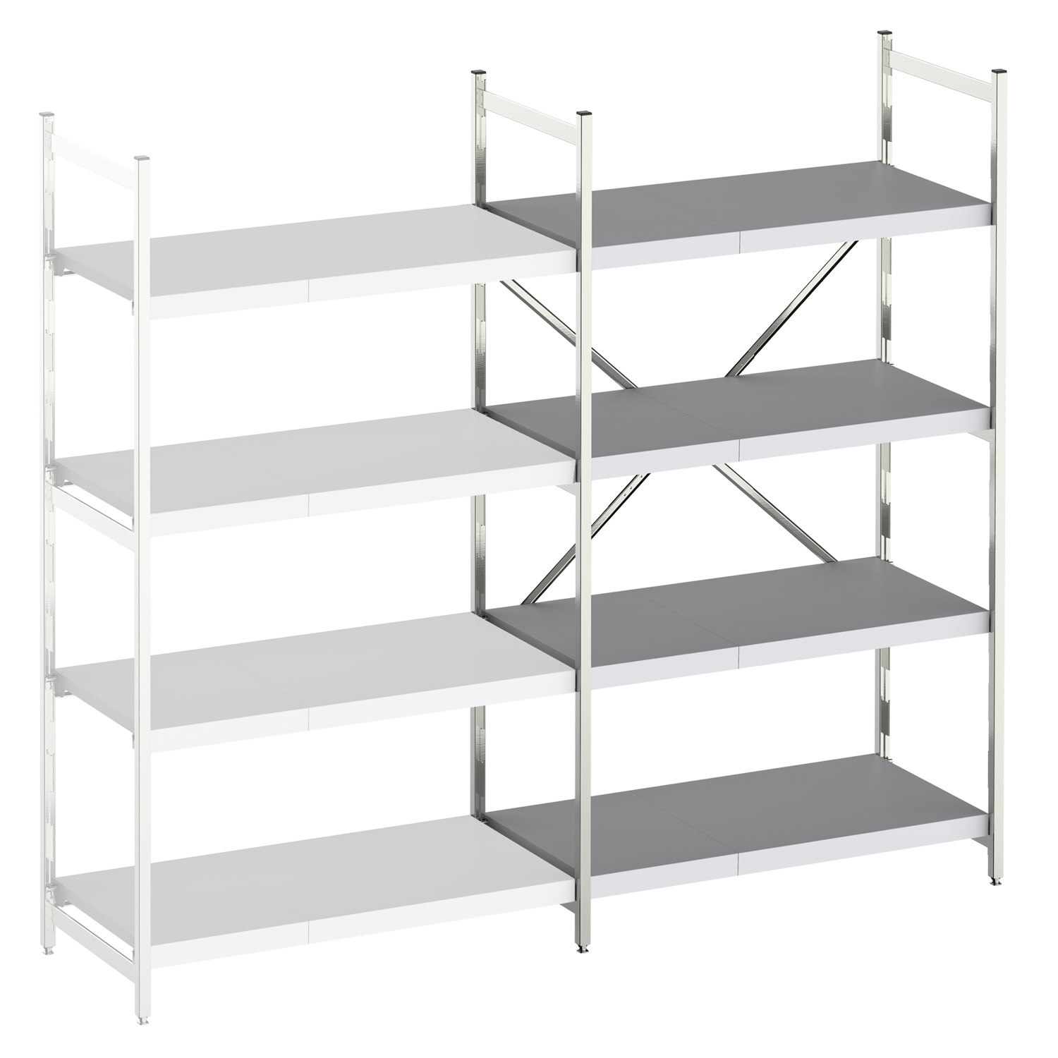 Hyllykköpaketti Metos Norm12 sisältää neljä hylltasoa, kaksi tikasta ja