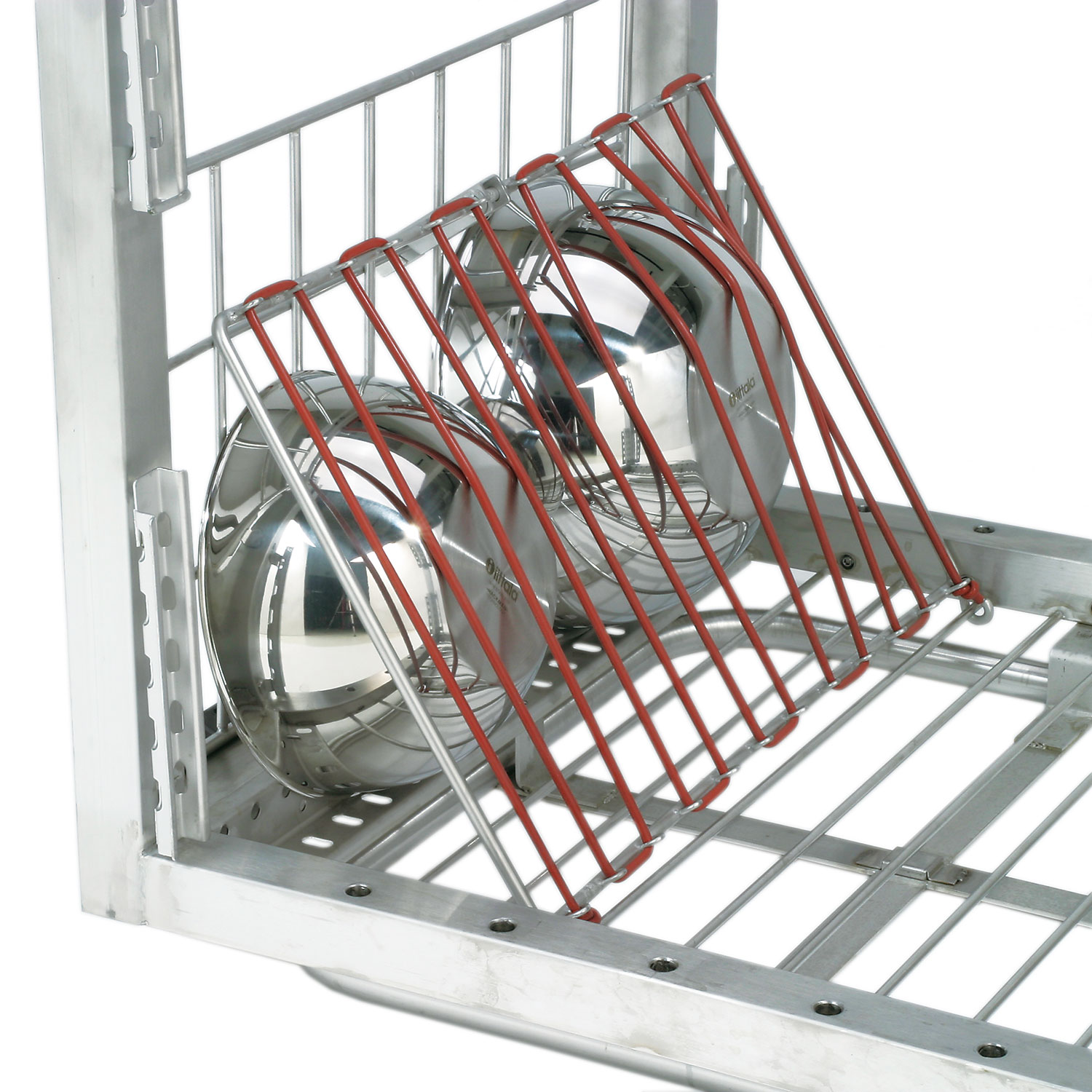 Harmaa lokerokori Metos punaisella kehyksellä ja lokerolla 49 x Ø60x120 mm lasille
