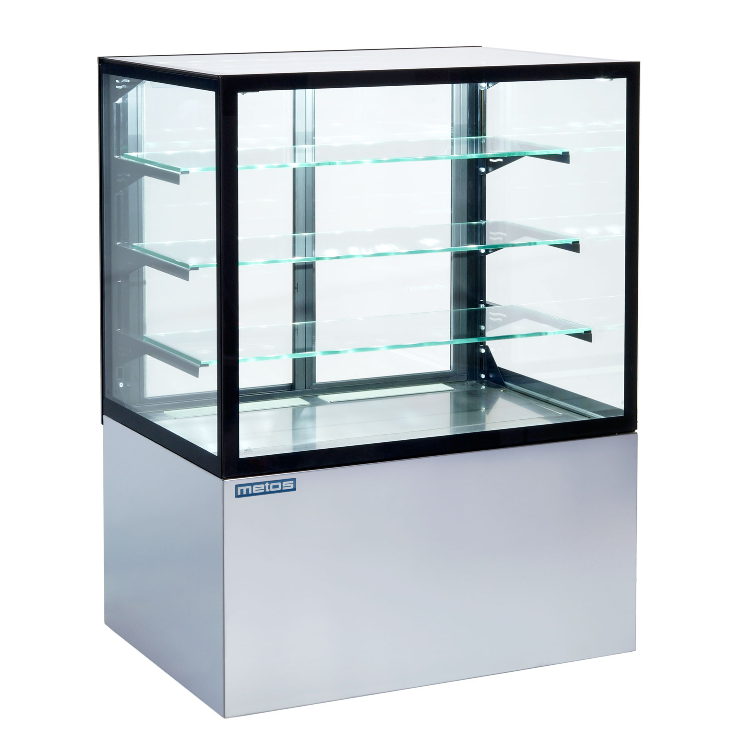 Metos Cube II 1000 -palvelulasikon yläosan led-valo sekä lasihyllyt