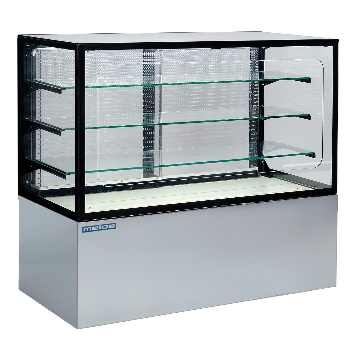 Metos Cube II 1500 -palvelulasikon yläosan led-valo sekä lasihyllyt