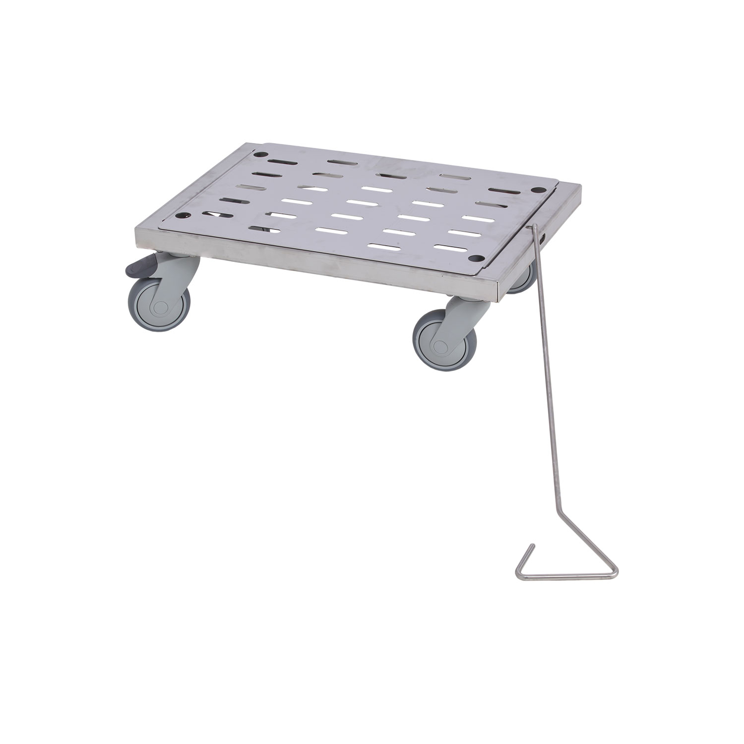 Vahvarunkoinen rst-kuljetusalusta – irrotettava rei’itetty kansilevy 400 * 600 mm – 100mm pyörät, joista kaksi lukittavia – kantavuus 150 kg