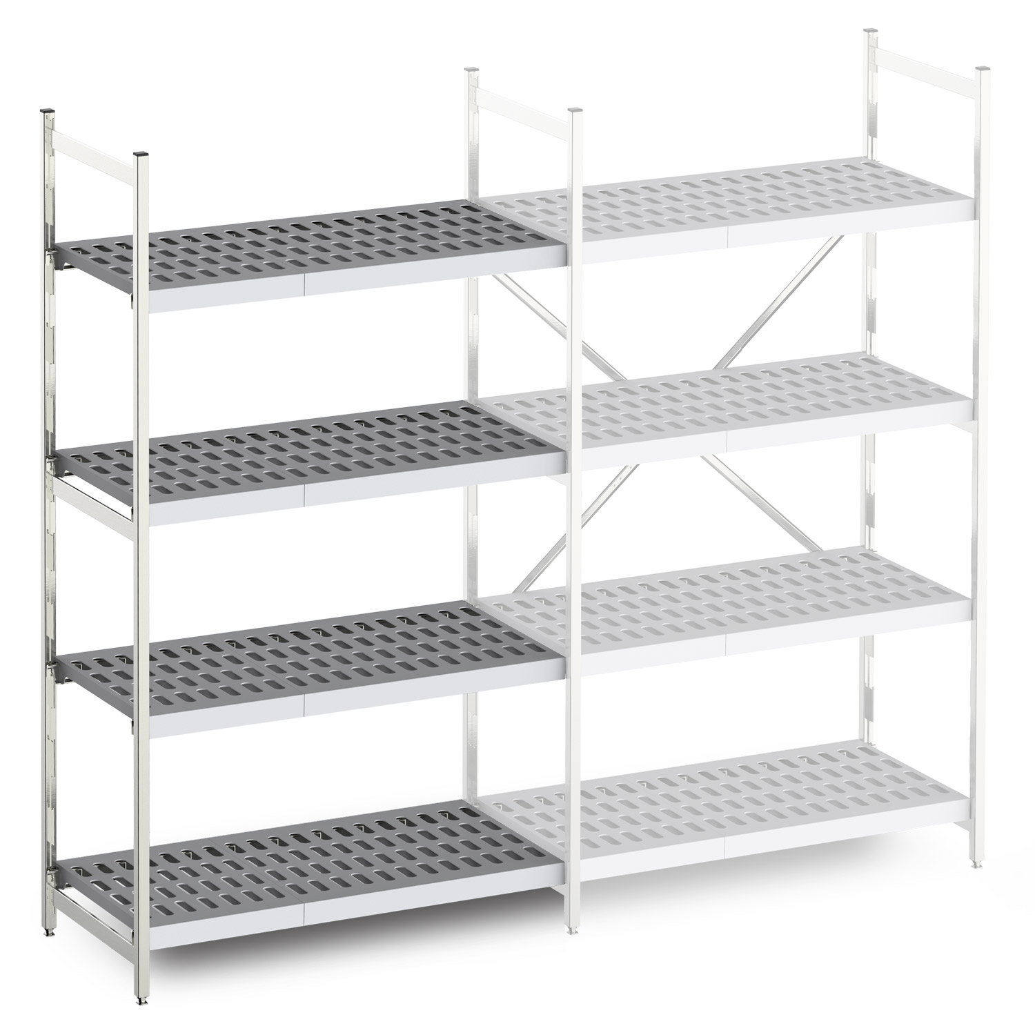 – neljä polymeeristä(elintarvikemuovia) valmistettua reikähyllyä