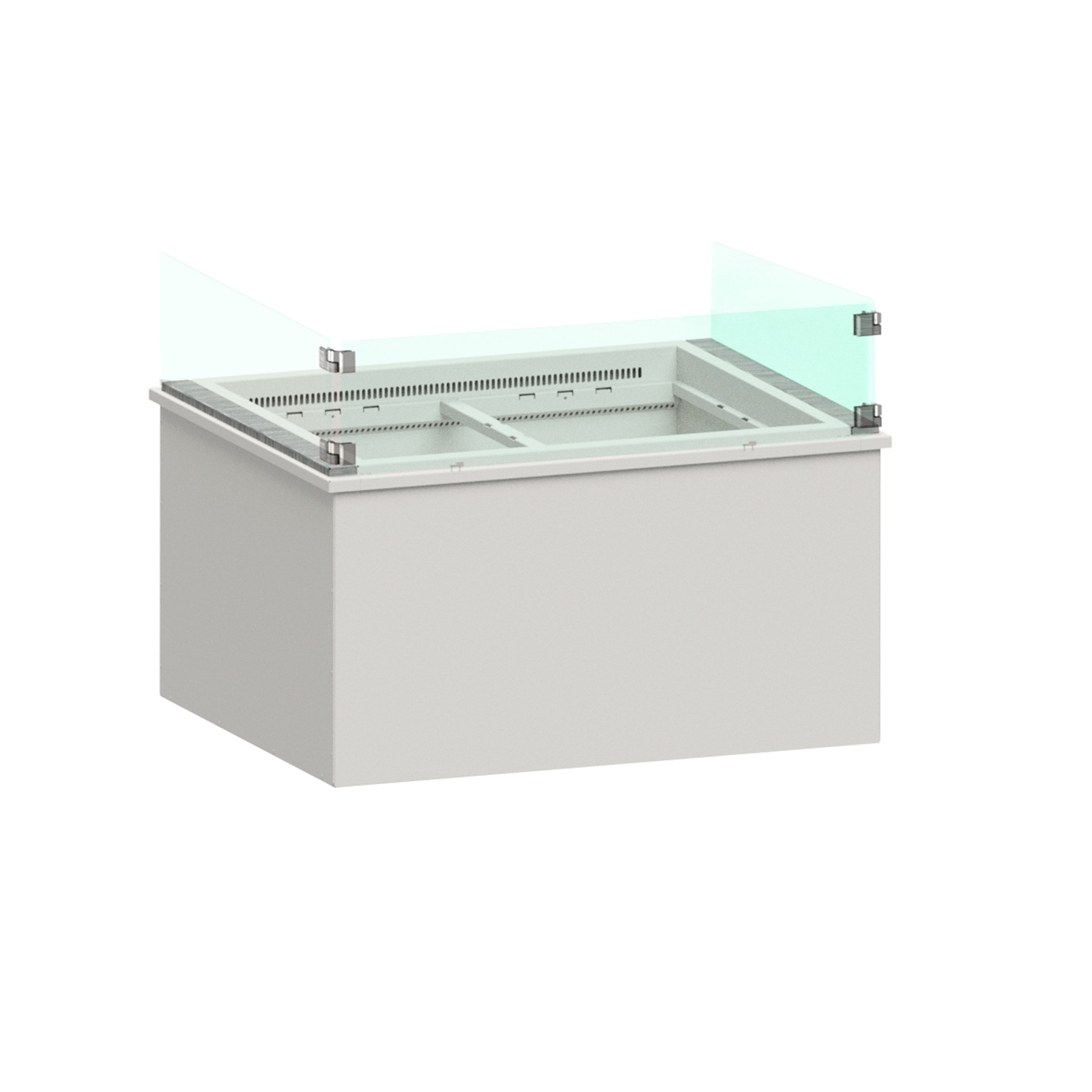 – kirkas karkaistu lasikaulus kahdelle lyhyelle ja yhdelle pitkälle sivulle – Halo D-I 800 -kylmäaltaaseen