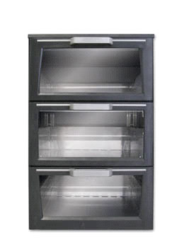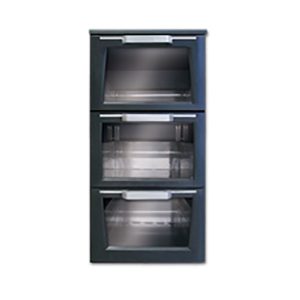 – antrasiitin musta ulkopaneli – kolme vetolaatikkoa lasiluukulla – kaksi poikittaisjakajaa – valkoinen LED valaistus – säätöjalat