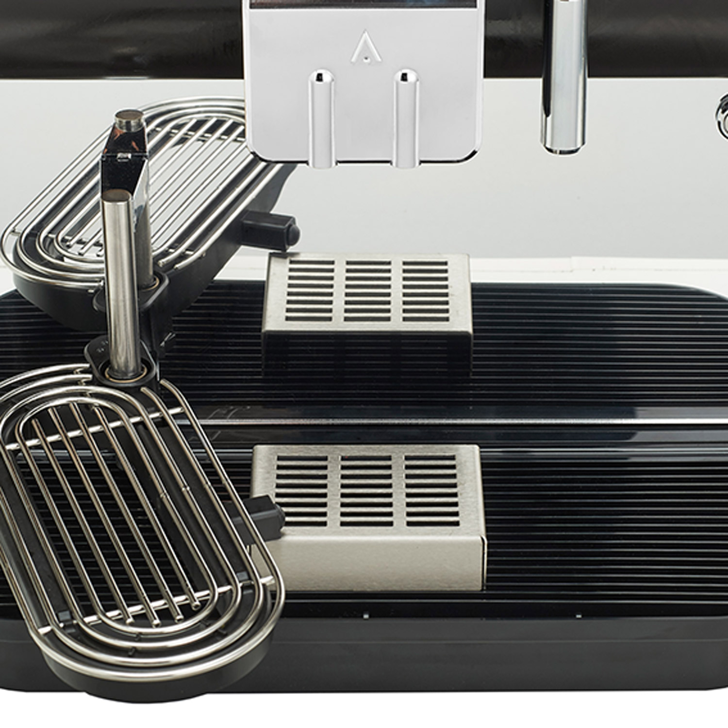 Kone macchiato jalalla, mahdollistaa korkeiden latte macciato – lasien käytön, hana 140 mm korkeudella.