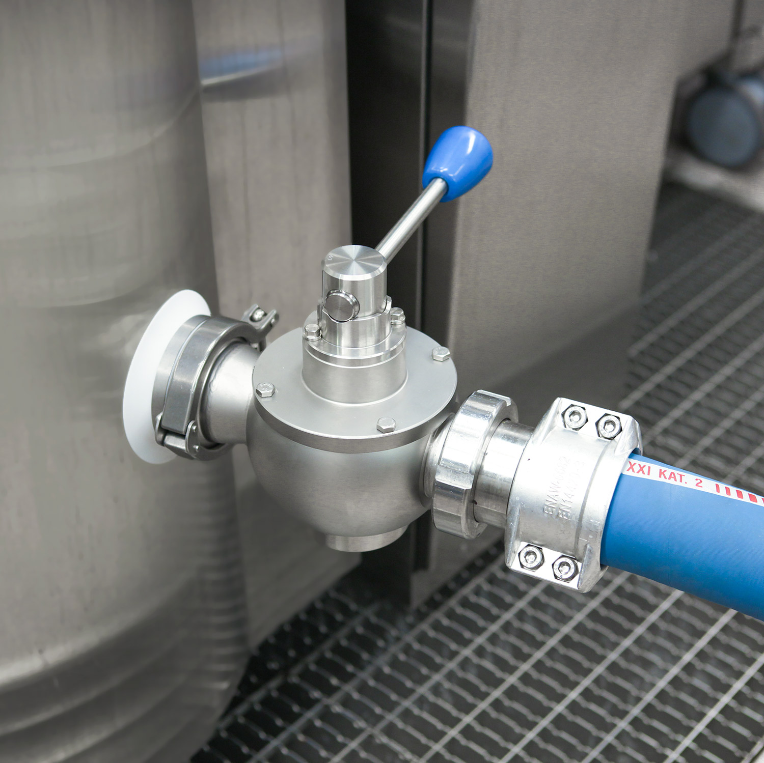 Täysautomaattinen CIP-järjestelmä puhdistaa kaikki sisäosat, kuten putket, venttiilit ja pumpun. Puhdistusjärjestelmä annostelee pesu- ja desinfiointiaineen.