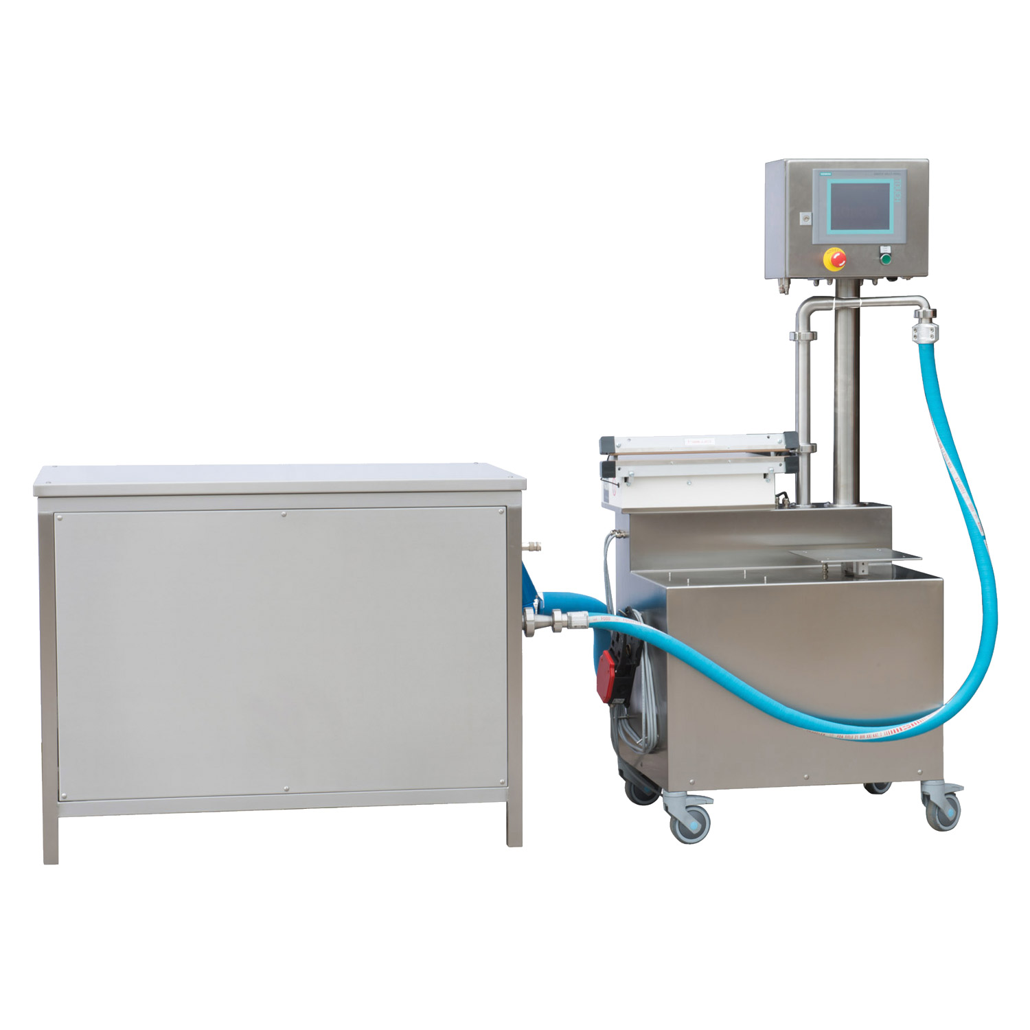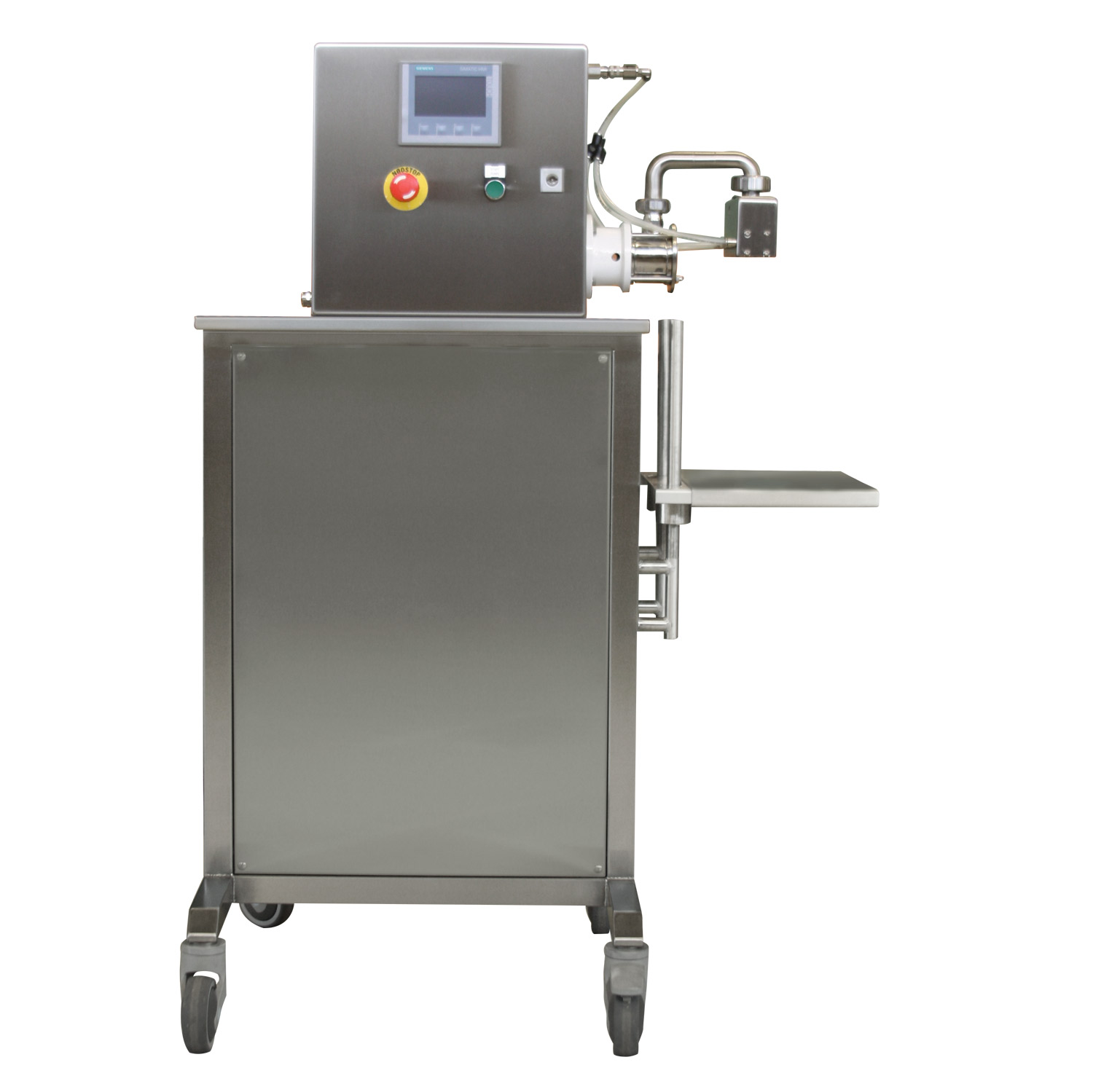 Puhdistus tapahtuu sisäänrakennetulla puoliautomaattisella CIP-järjestelmällä, joka pesee kaikki laitteen sisällä olevat putket, letkut ja venttiilit. Kaikki irrotettavat osat ovat konepesun kestäviä.