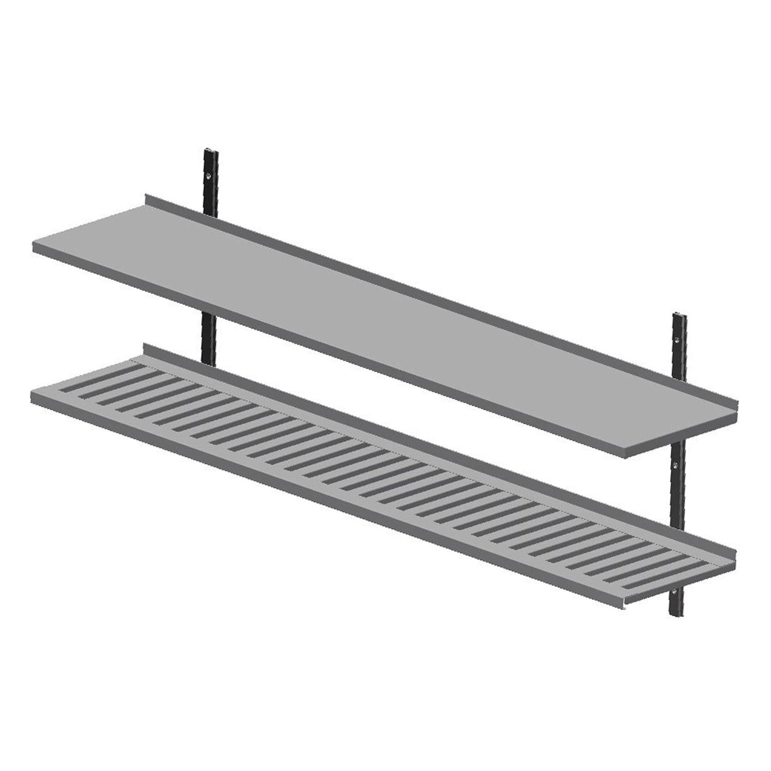 – ruostumatonta terästä – yksi 1600×300 mm tasohylly – yksi 1600×300 mm ritilähylly – neljä hyllynkannatinta, pituus 297 mm – kaksi säätölistaa, pituus 600 mm