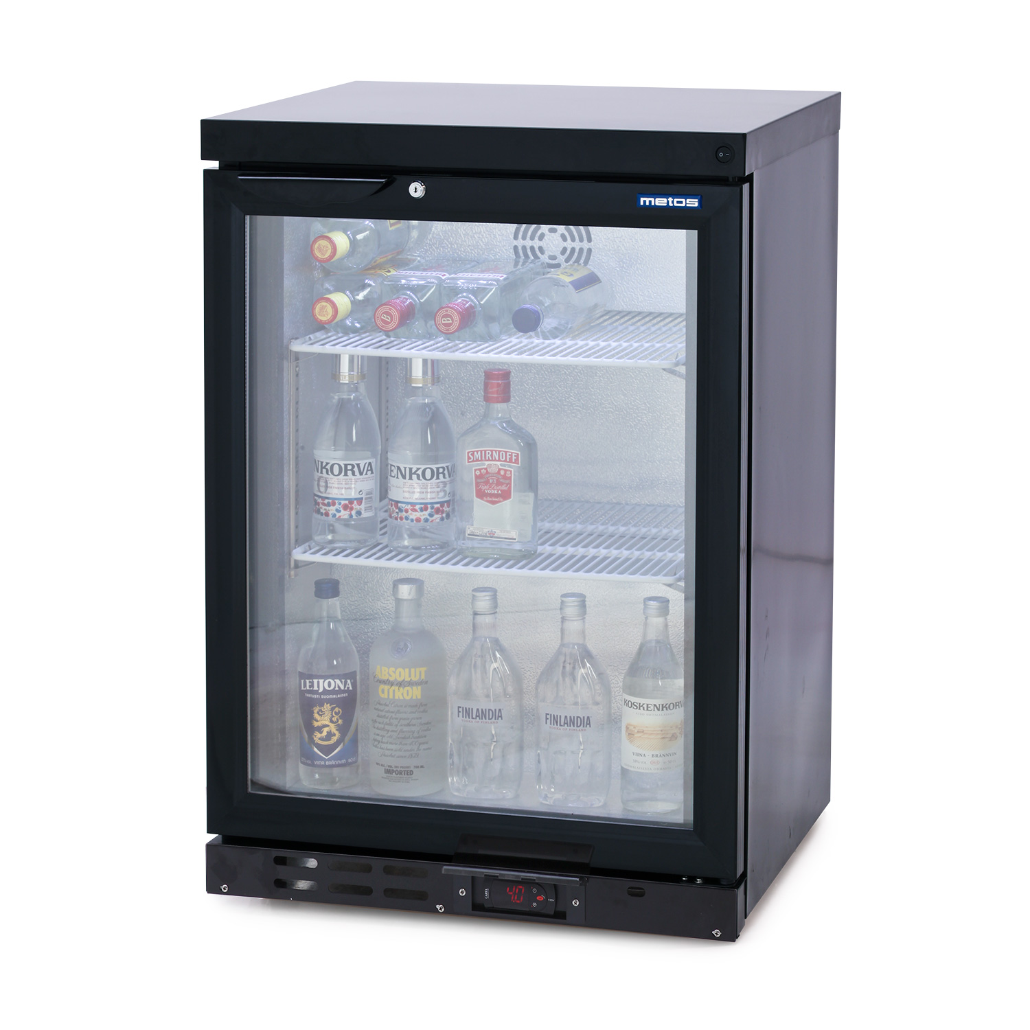 – lasiovinen pullopakastinkaappi LED -sisävalolla