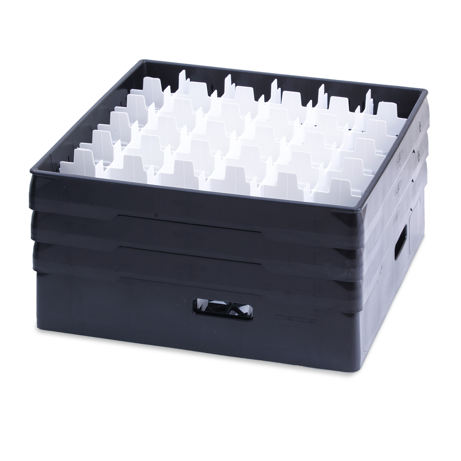 Pohjan muotoilun ansiosta korit pinoutuvat napakasti, mikä helpottaa