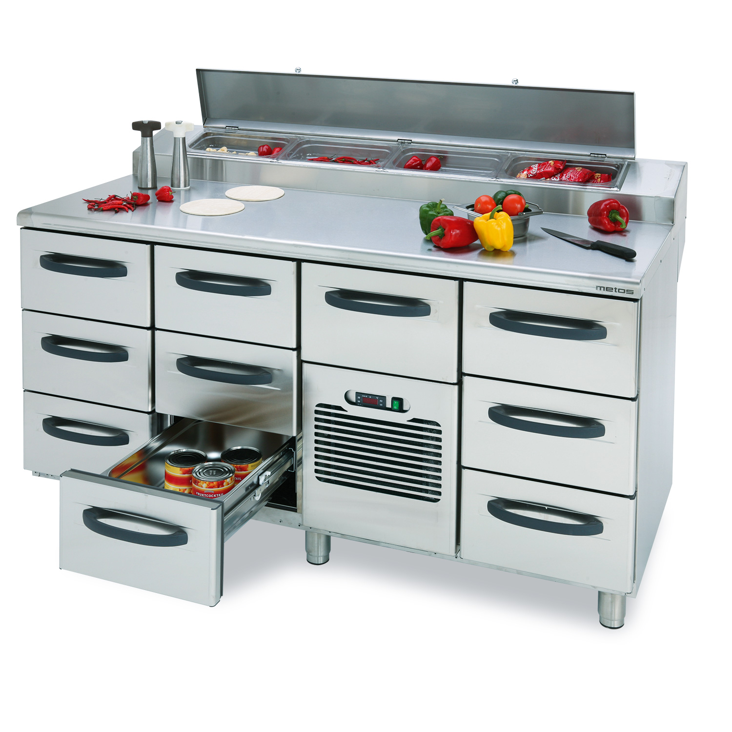 Pizzatyöpöytä Metos Proff PT1600-GN3-GN3-MGH-GN3 tarjoaa tason
