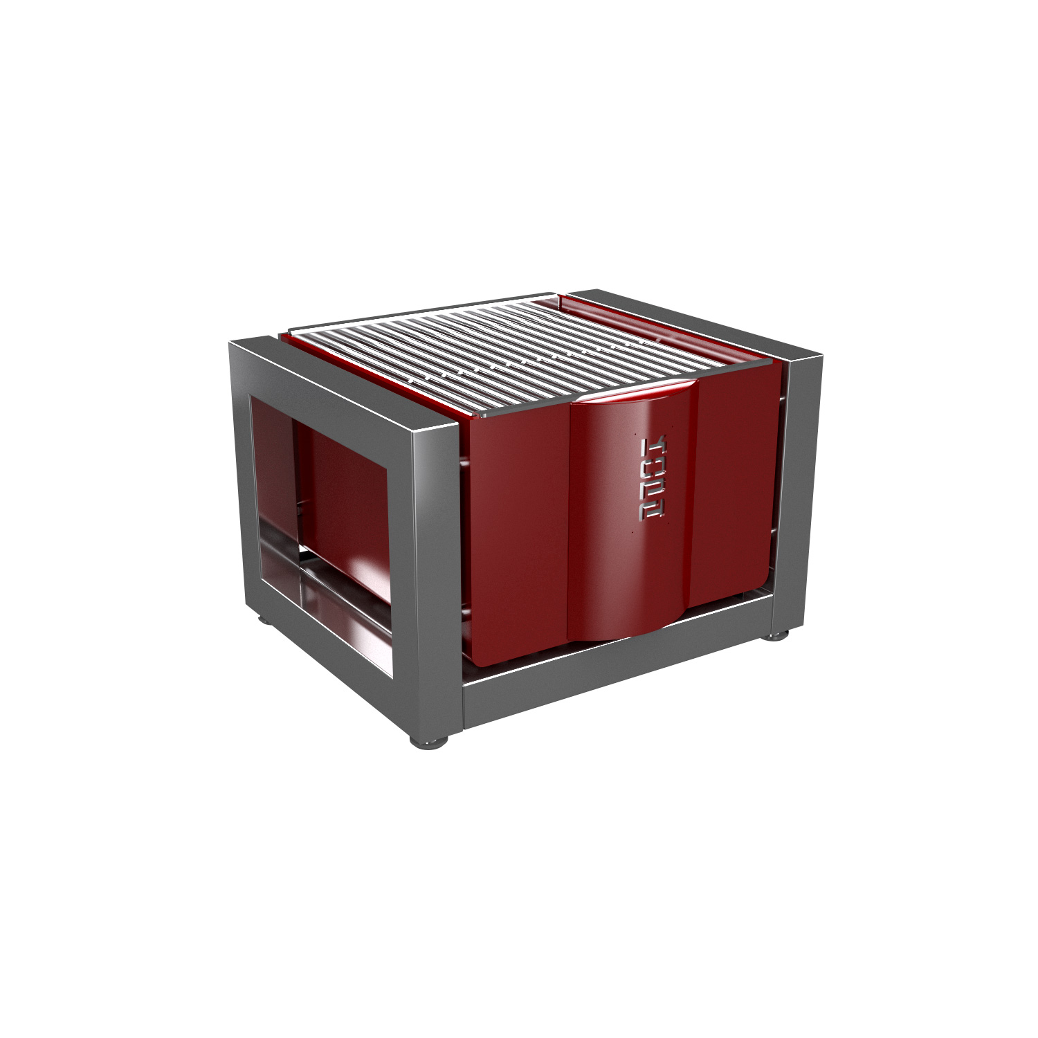 Perinteinen puu-grilli 2000-luvun keittiölle. – Se on hyvin eristetty, jotta estetään ulkoisten pintojen ylikuumeneminen – Tulipesä on vuorattu palo-tiilistä lämmön kertymiseksi ja pitkän käyttöiän varmistamiseksi – punainen