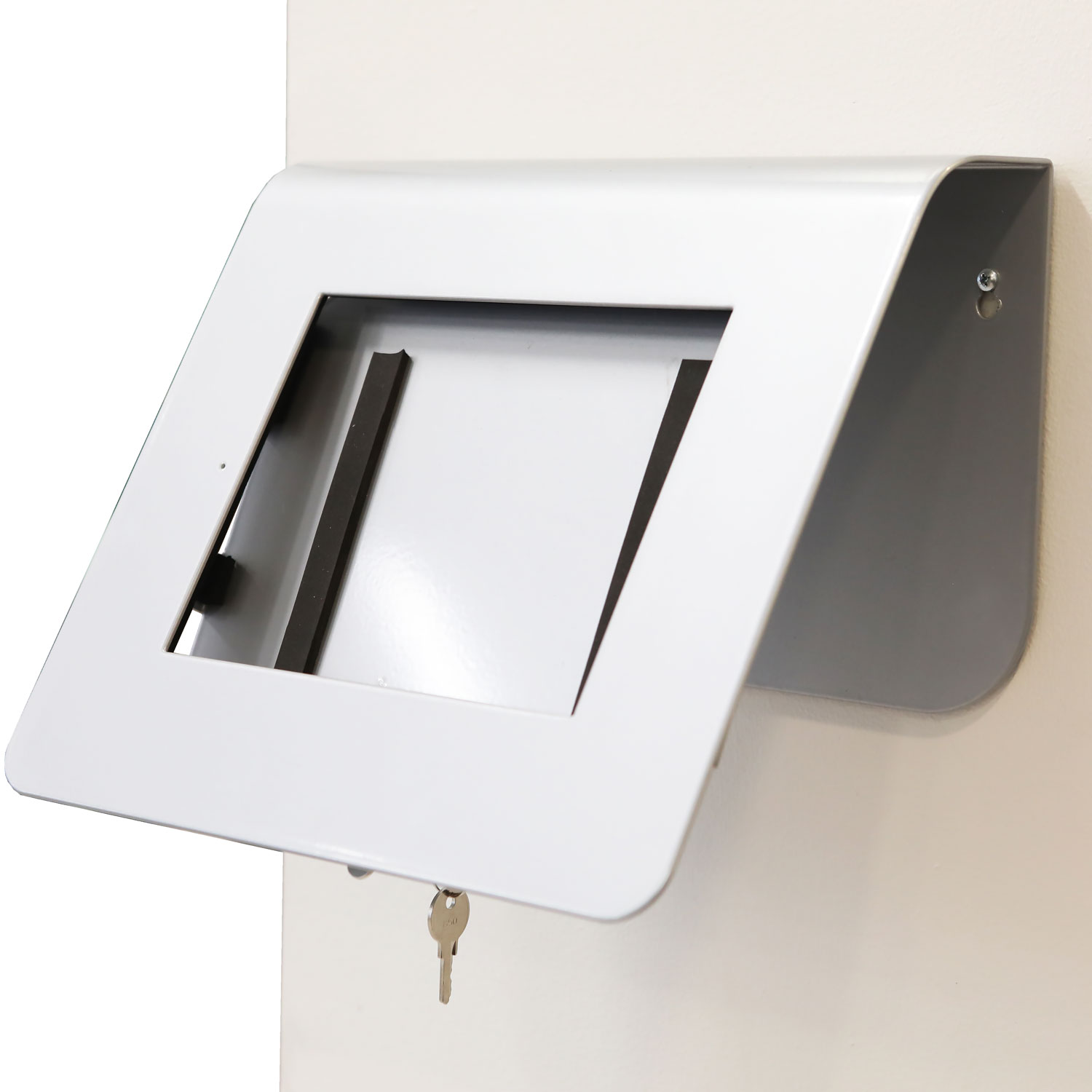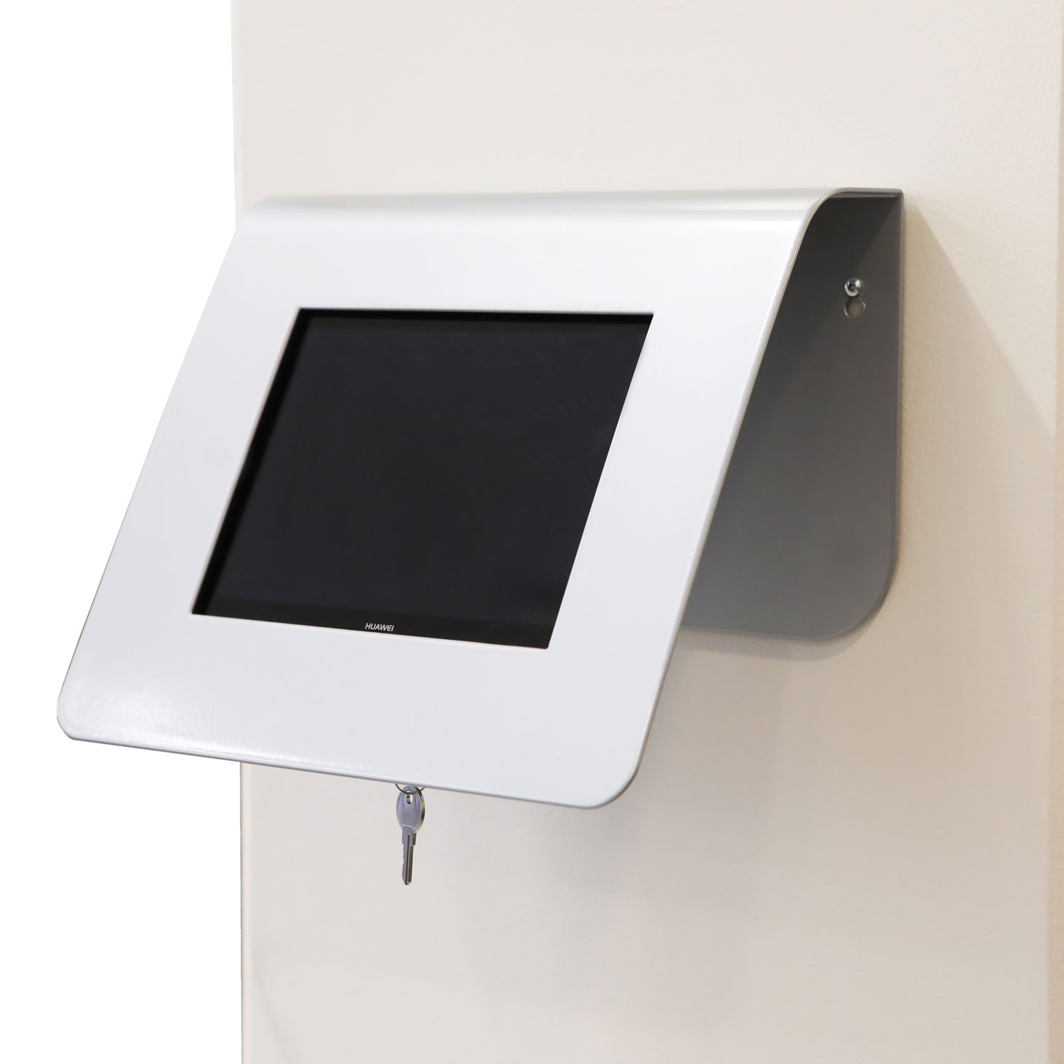 Lukittava teline Metos ioLiving hävikkivaa,an kosketusnäytölle. Materiaali pulverimaalattu metalli, väri mattahopea. Mukana 2 avainta. Teline voidaan laittaa pöydälle tai asentaa ruuvikiinnityksellä seinälle.