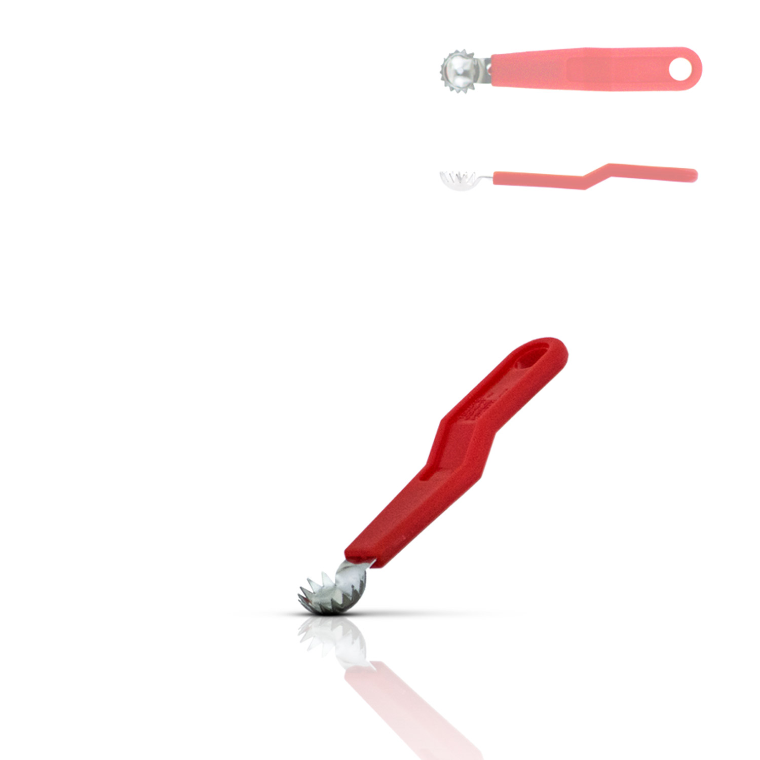 Poistaa myös varret mansikoista sekä omenan tai päärynän siemenet. Voi
