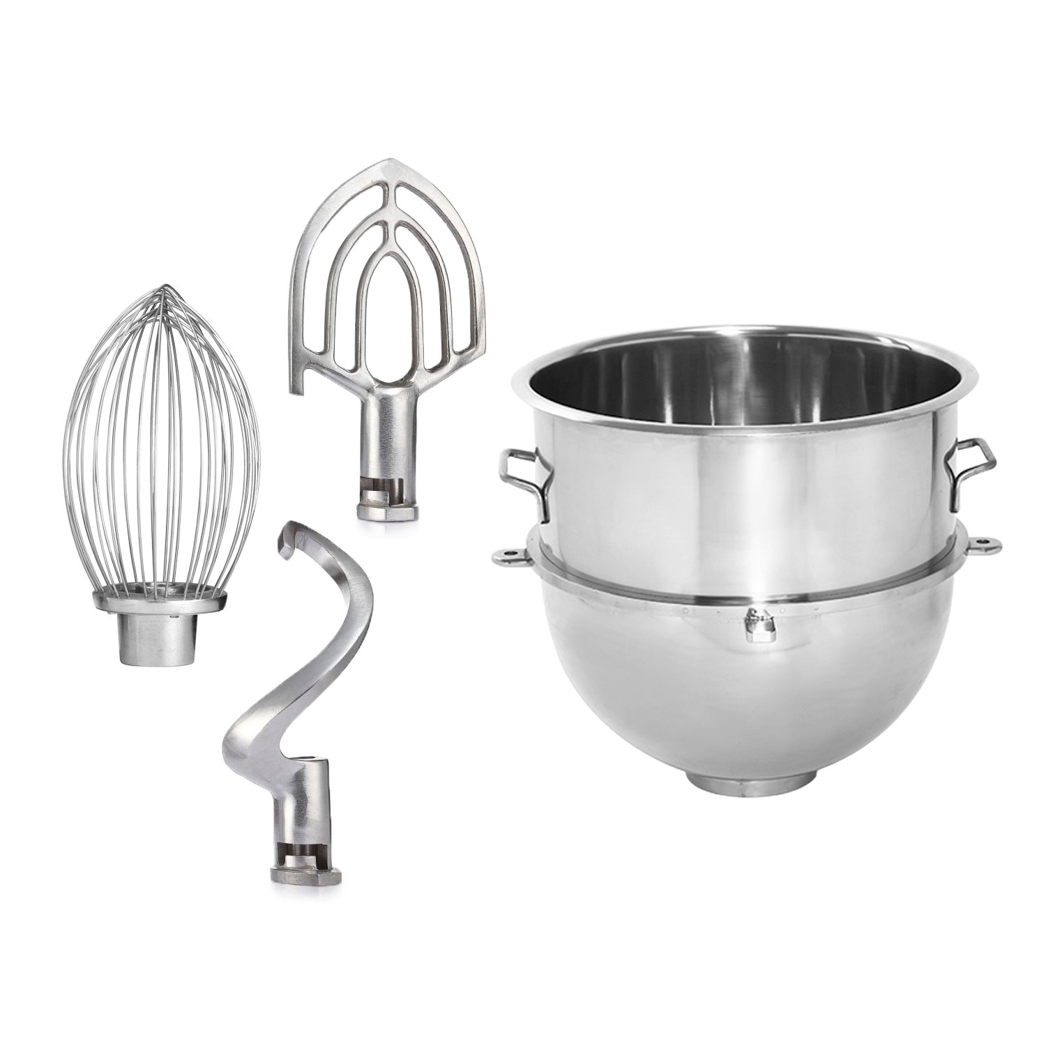 – 20 litran kulho ruostumatonta terästä – alumiininen taikinakoukku – vispilä ruostumatonta terästä – alumiininen sekoitusmela