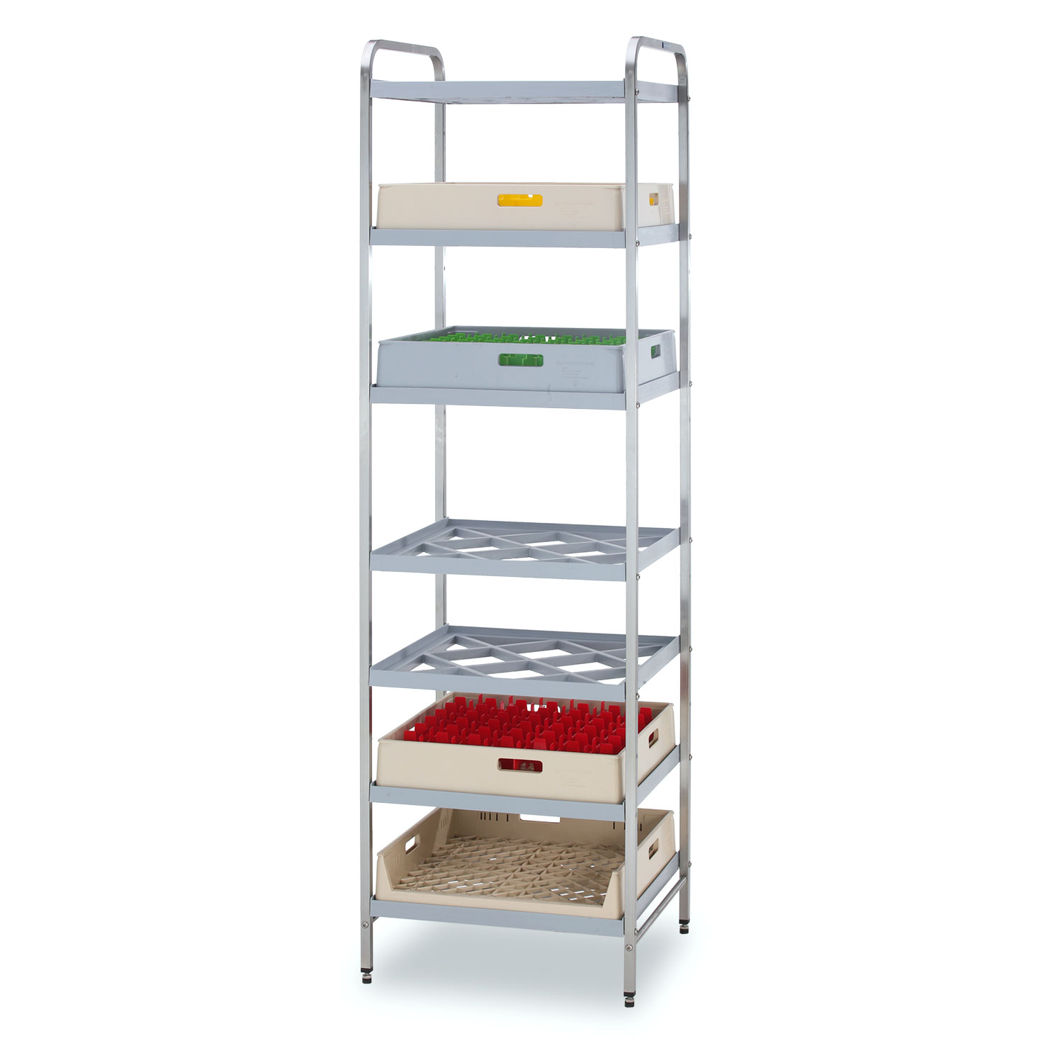 – 7 x hyllyt muoviritilää – kapasiteetti 7 astianpesukoria eli n. 250 lasia – hyllyt mitoitettu 500x 500 astianpesukoreille – hyllytikkaat 20×20 mm rst-neliöputkea – säätöjalat – toimitetaan osina ja ovat koottavissa ilman työkaluja