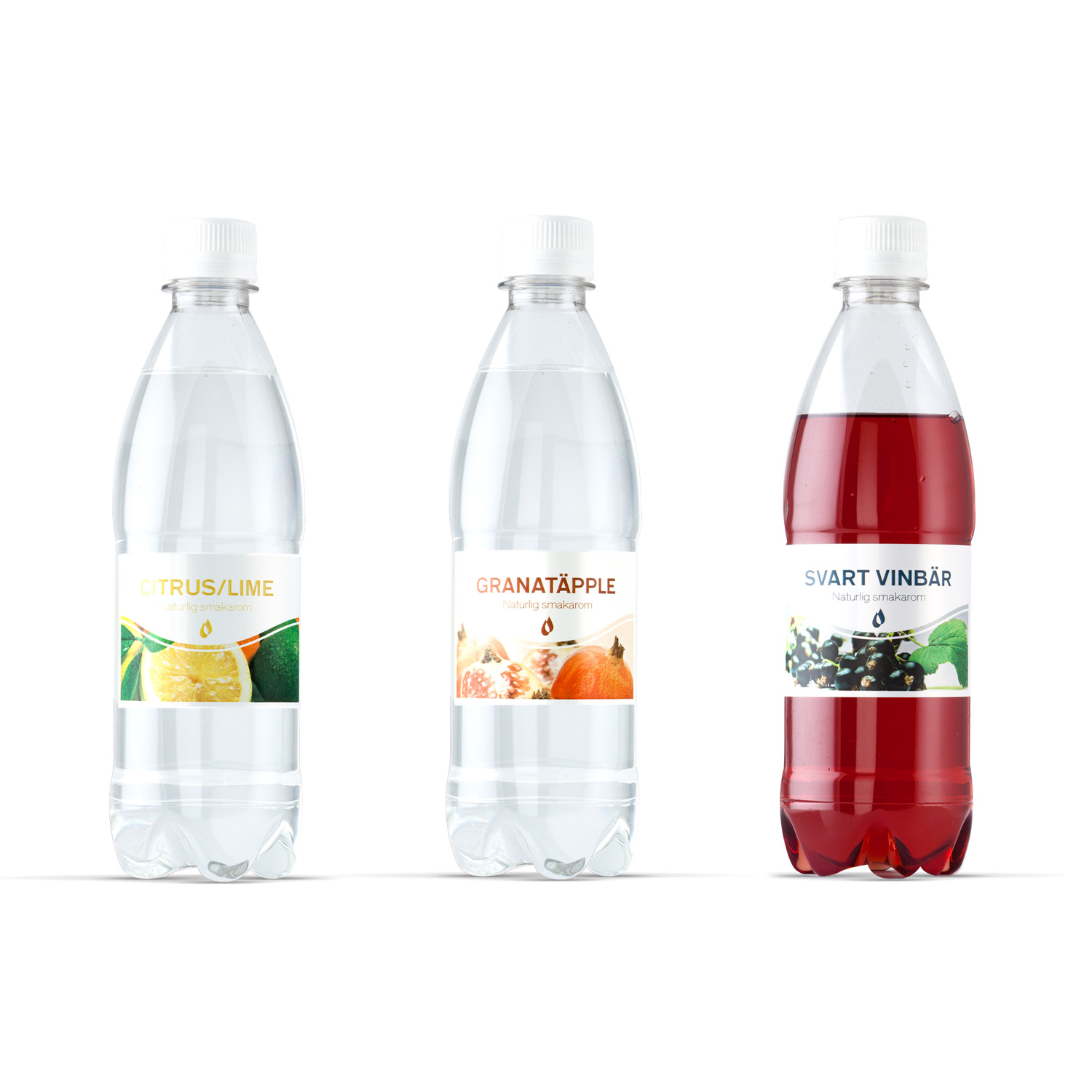– kolme 500 ml makuainepulloa (sitruuna/lime, granaattiomena,