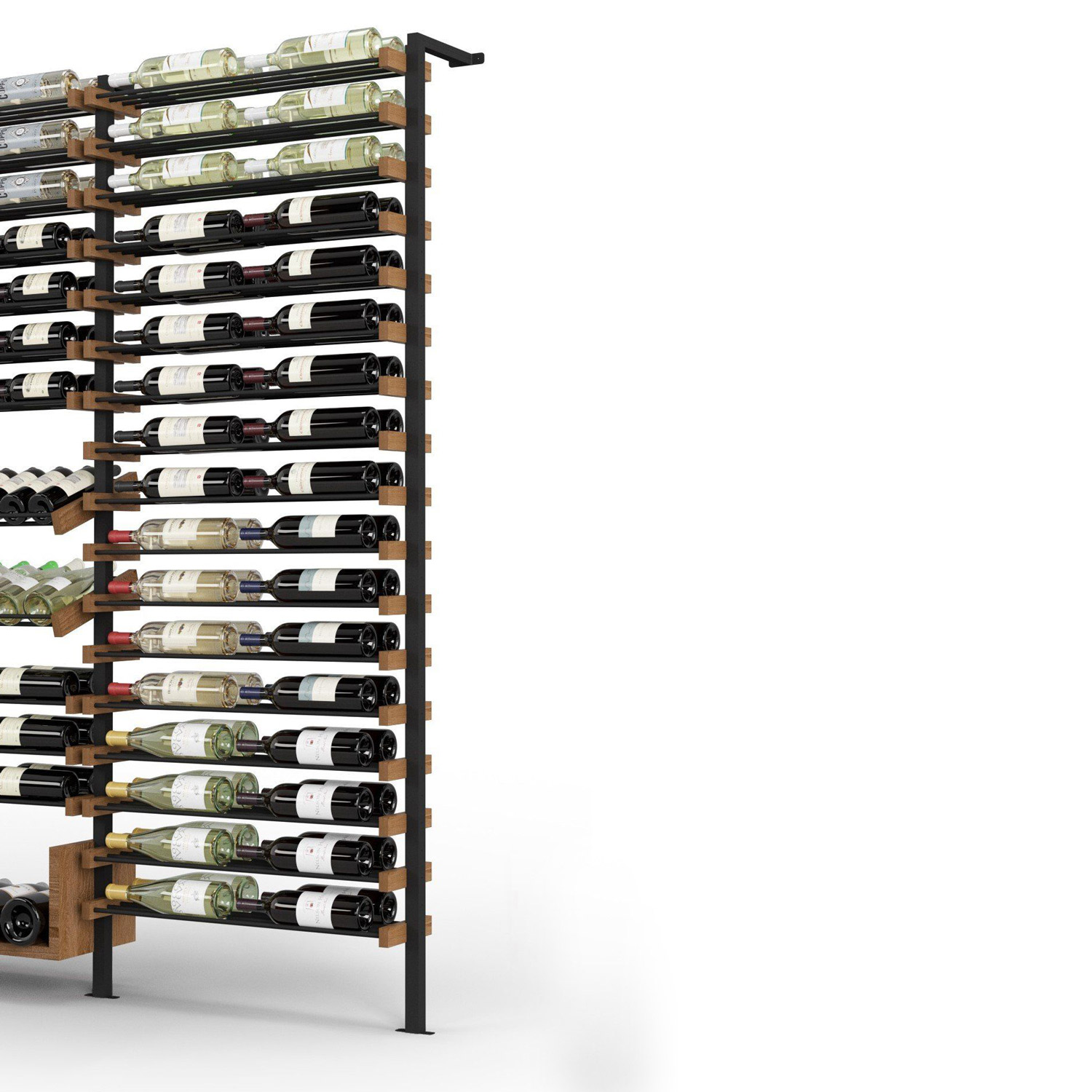 – Vakiokokoonpano: 17 hyllyä, joihin mahtuu 2 + 2 pulloa viiniä hyllyä