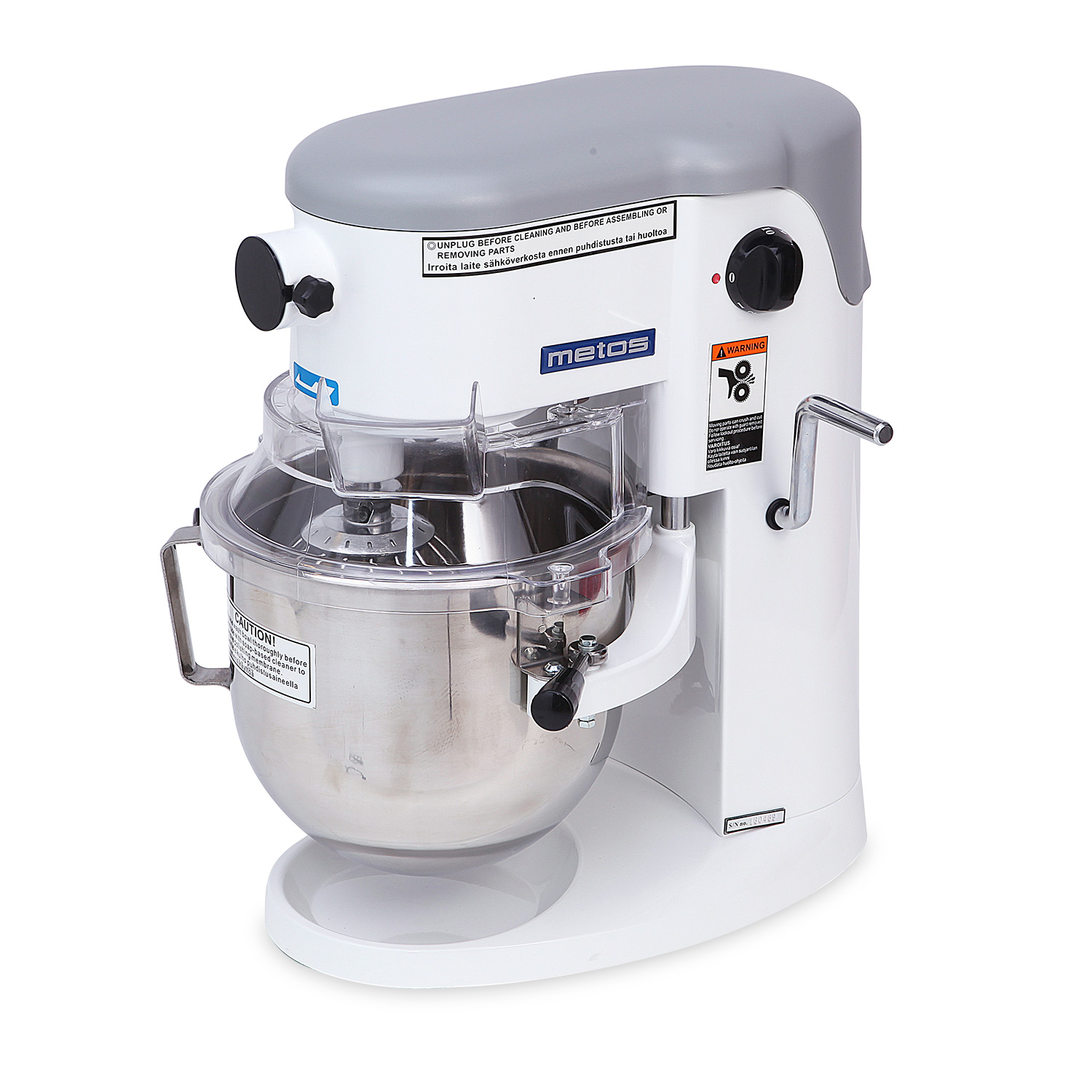 Vakiovarusteet (sisältyvät tarjottuun hintaan) – ruostumaton teräs kulho 5 l – ruostumaton teräs koukku – ruostumaton teräs vispilä – ruostumaton teräs mela
